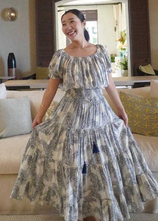 リーフアウトライン オフショルダー クロップトップ フリル付き 14-417OL-SM