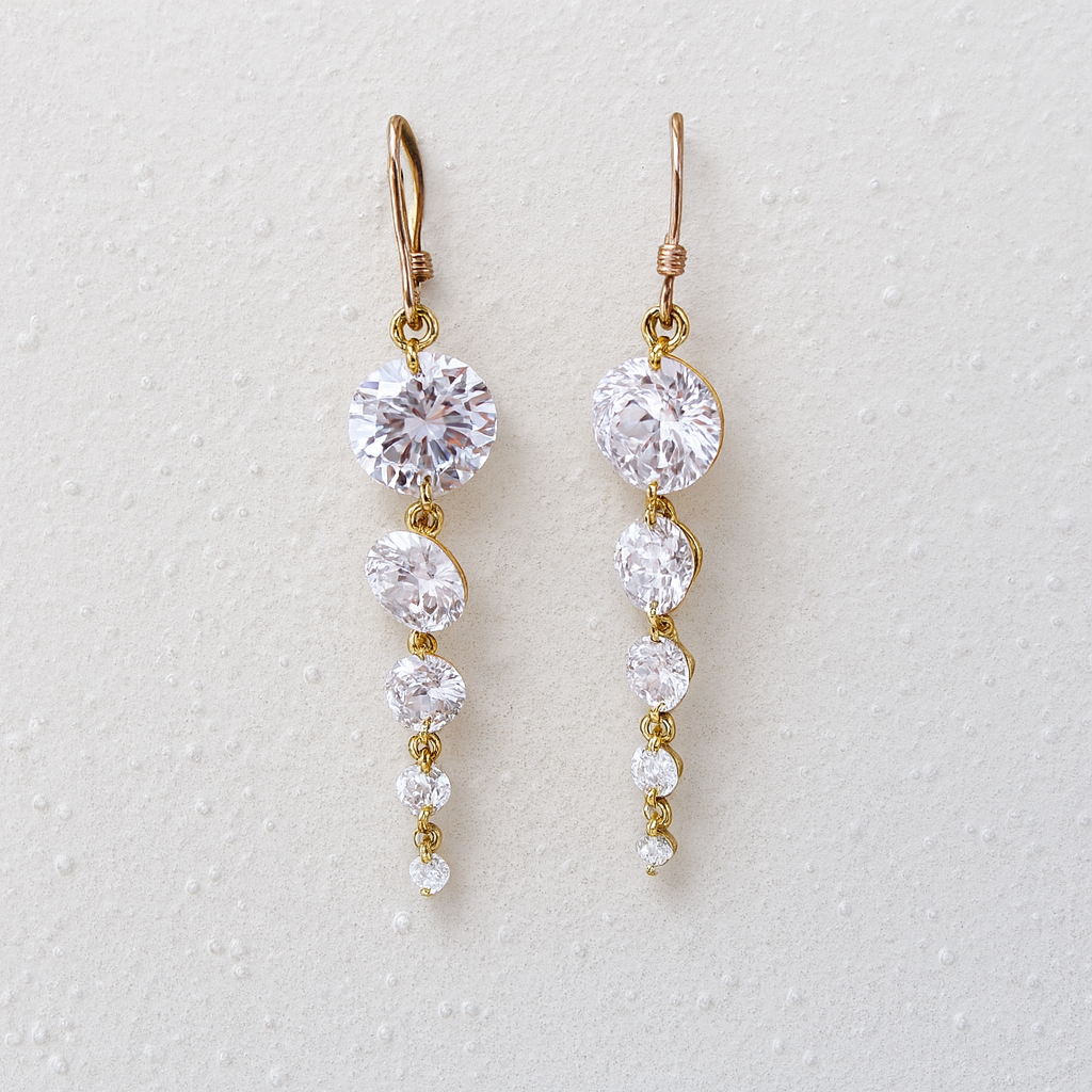 Radiate timeless elegance with the Cascading Cubic Earrings — a graceful drop design featuring a shimmering line of cubic zirconia stones that sparkle like sunlight on the ocean. Each stone catches the light beautifully, creating a soft, flowing brilliance with every movement.
