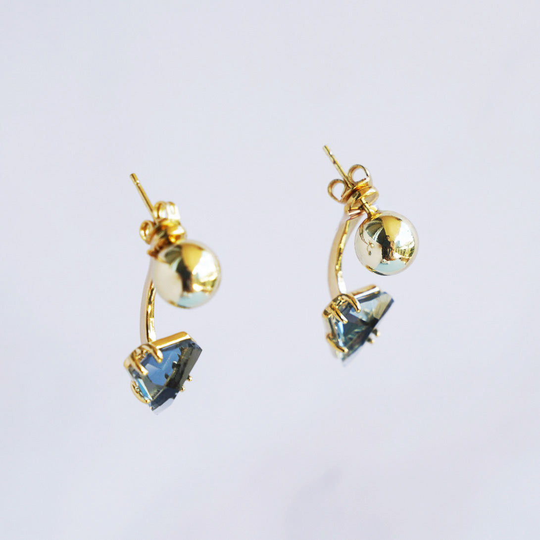 Subtle sophistication meets island elegance with the Charcoal Jacket Earrings. These gold-tone curved studs feature a polished sphere paired with a smoky charcoal crystal that shimmers beautifully with every movement. The modern arc design gives the illusion of the gem floating beneath the ear, adding a chic and graceful touch to any look.