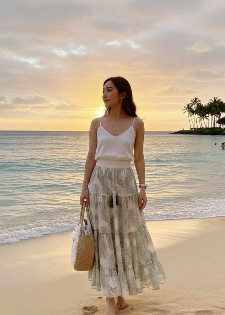 Our Roa Leaves Outline Skirt is an exquisite offering from Angels by the Sea Hawaii, a brand renowned for its resort wear inspired by Hawaii's breathtaking beauty. This skirt is a perfect blend of elegance and comfort, ideal for both beach strolls and sophisticated evenings. Reflecting the brand's commitment to unique, handcrafted designs, this piece encapsulates the aloha spirit of Hawaii. Wear it to experience the unique style of Hawaiian resort wear, wherever you are. Enjoy the versatility of this piece, designed to make you feel beautiful, confident, and comfortable.