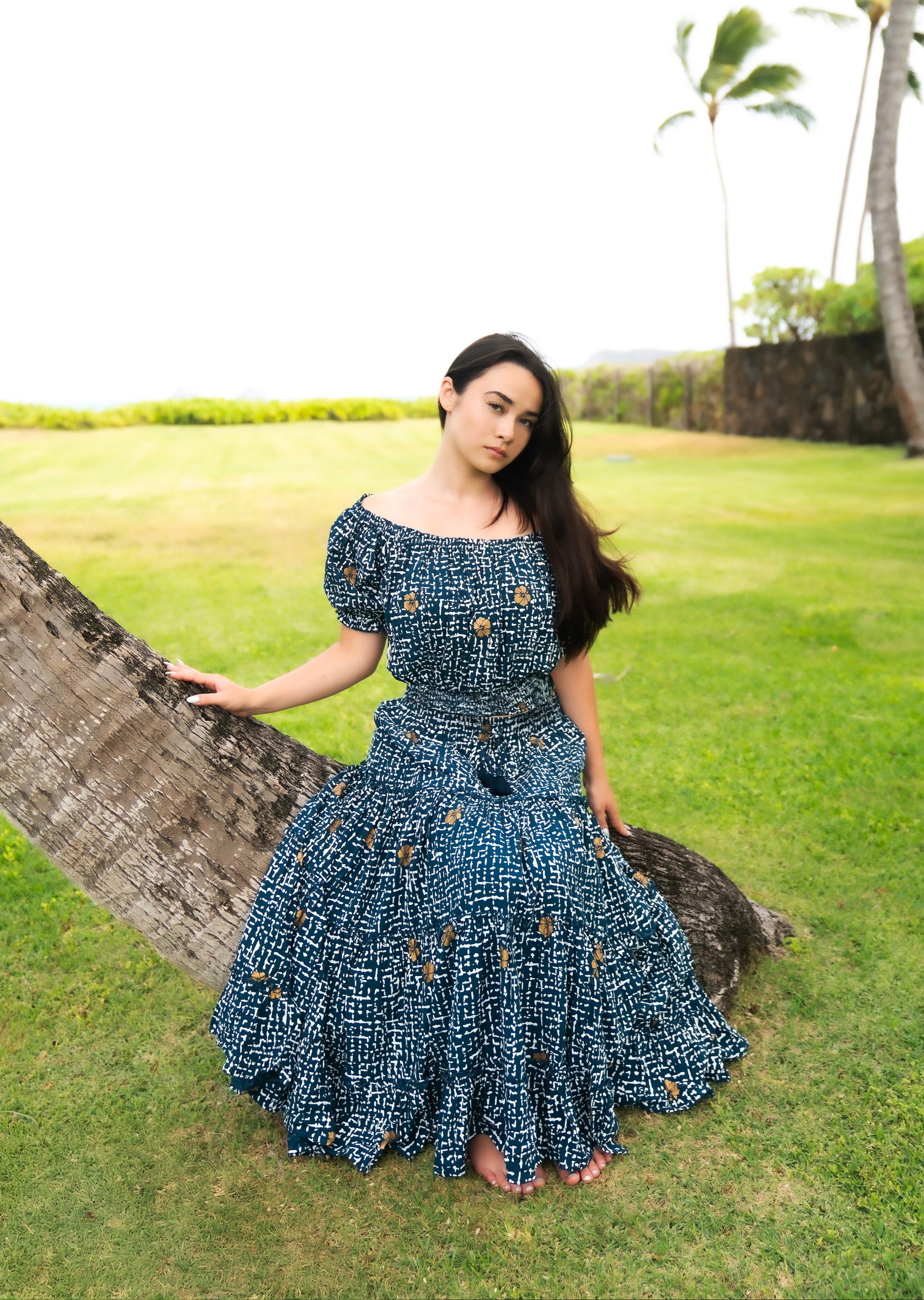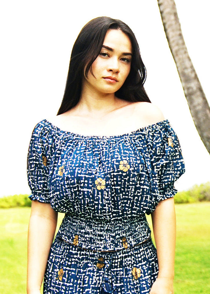The Wai Golden Hibiscus Top is designed for both comfort and style, with a stretchy smocked bodice that flatters while allowing ease of movement. It can be worn as a classic top or styled off the shoulder for a more relaxed look. Finished with golden hibiscus accents, it pairs seamlessly with our Roa Golden Hibiscus Skirt for a matching set. Available in teal and white.