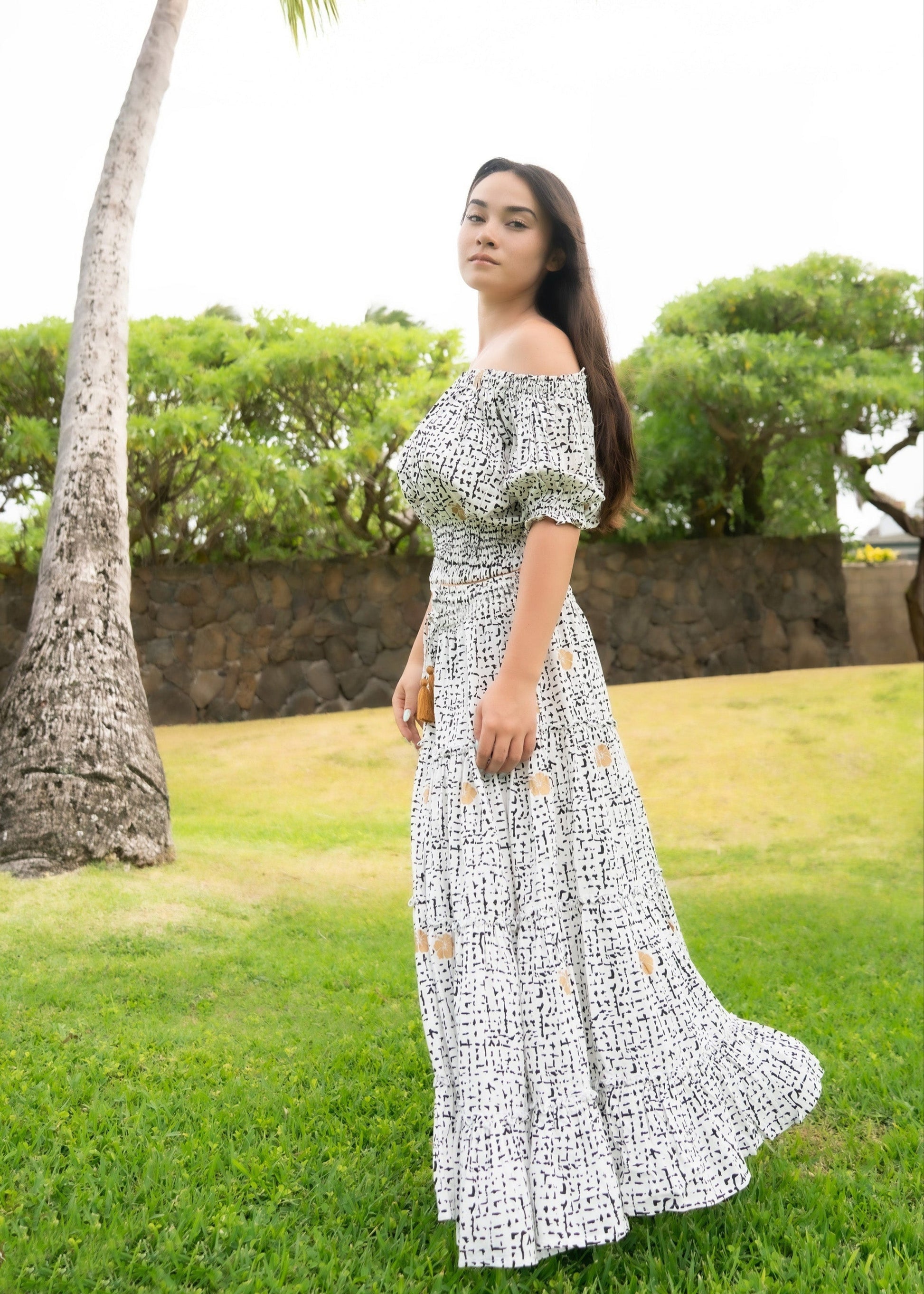 With a wide, smocked waistband for a flattering high-waisted fit and maximum comfort, this skirt is designed to move with you — from barefoot beach walks to evening hula dances. Its soft, breathable fabric drapes beautifully, making it a go-to piece for warm weather or tropical escapes.